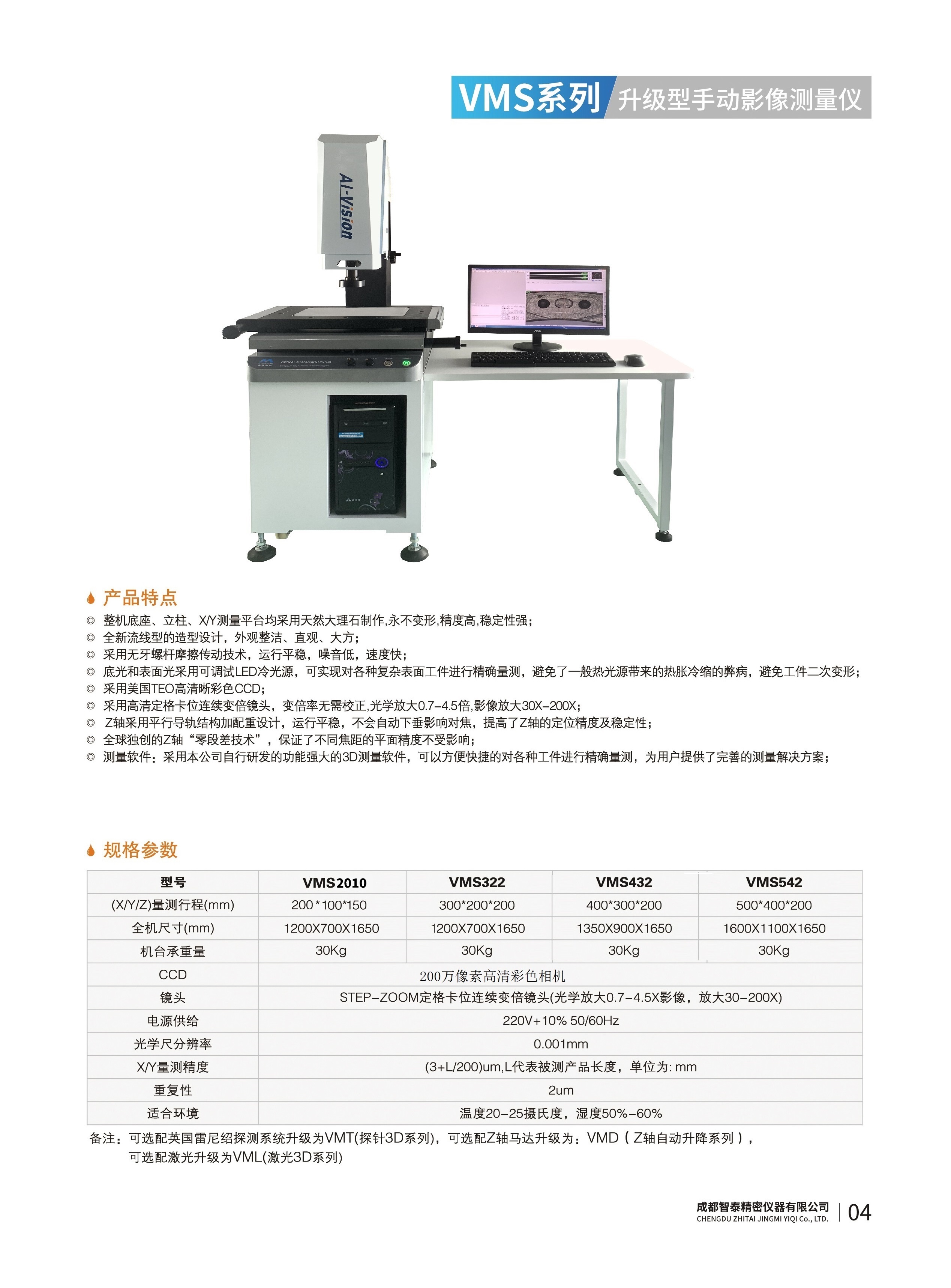 成都智泰精密儀器有限公司專注于精密測量儀器,人工智能,智能制造領(lǐng)域,專業(yè)從事智能視覺自動化檢測解決方案的貿(mào)易型企業(yè)。公司成立于2011年,位于天府之國成都,現(xiàn)有行業(yè)精英十余人,辦公倉儲面積200余平米。 公司主要產(chǎn)品為精密光學(xué)影像測量儀,精密輪廓形狀測量儀,精密機(jī)器人定位系統(tǒng),精密智能視覺尺寸檢測儀器,精密表面缺陷智能檢測設(shè)備,工業(yè)工程特種機(jī)器人。 公司憑借過硬的技術(shù)實(shí)力和產(chǎn)品方案,率先進(jìn)入智能視覺自動化檢測領(lǐng)域,推廣以精密智能視覺自動化檢測為基礎(chǔ)的機(jī)器人自動化應(yīng)用,公司不斷整合上下游的資源,擁有巨大的全產(chǎn)業(yè)鏈優(yōu)勢。客戶群體覆蓋了我國精密制造業(yè)的多數(shù)領(lǐng)域,包括航空、航天、軍工、汽車、新能源、光伏、食品,精密電子、精密機(jī)械、模具、PCB、LCD、五金、塑膠、醫(yī)療、教育、計(jì)量及科研院所等行業(yè)。 公司創(chuàng)新的產(chǎn)品能滿足生產(chǎn)與制造行業(yè)客戶的要求,訓(xùn)練有素的工程師能及時提供多種技術(shù)服務(wù),如解...